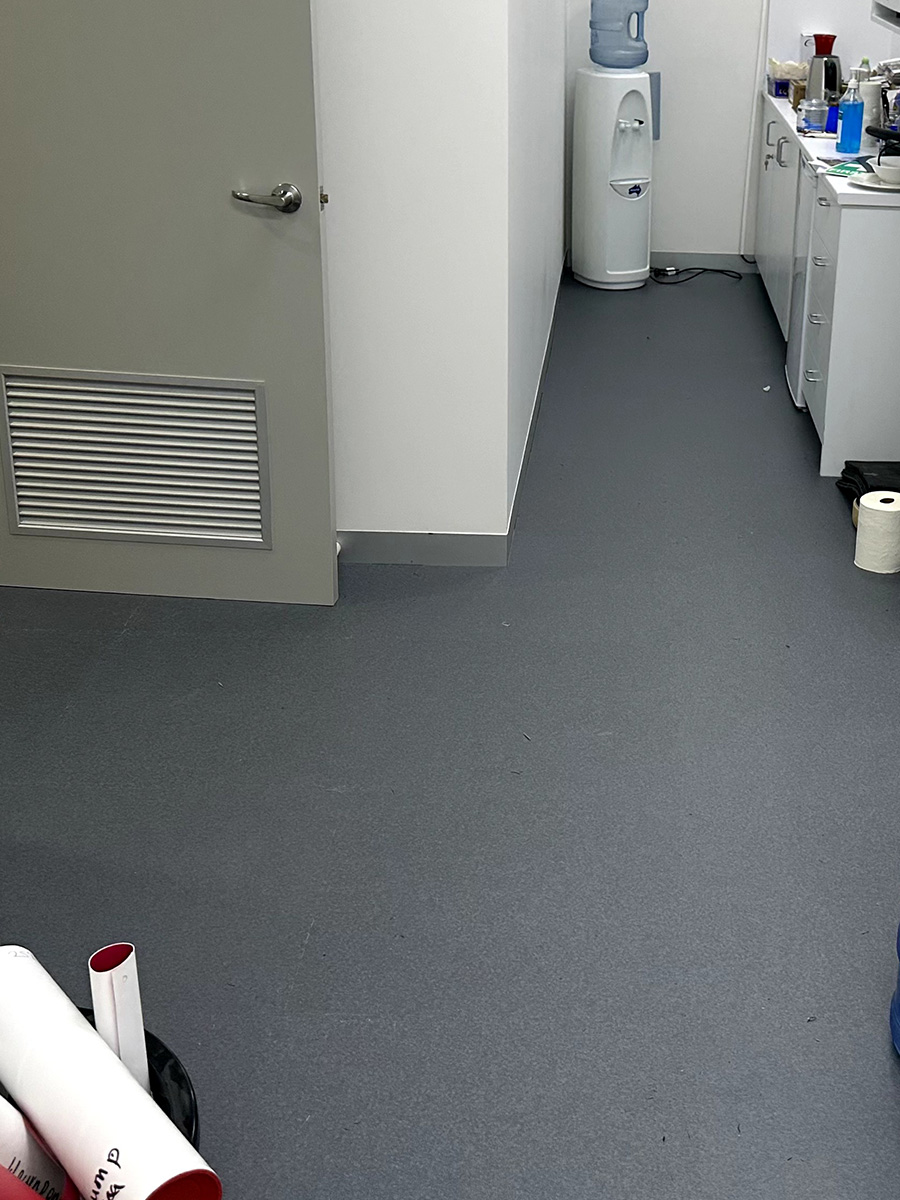 A 45m² commercial vinyl sheet installation completed in just 2 days, transforming a Doncaster dental clinic with a clean, durable, and hygienic flooring solution.